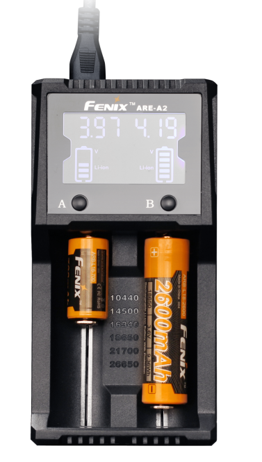 Нужный режим работы Fenix ARE-A2 подбирает самостоятельно в автоматическом режиме. На специально встроенном дисплее пользователь видит всю актуальную информацию о своих элементах питания: текущий уровень заряда, время зарядки, напряжение и тип аккумулятора.