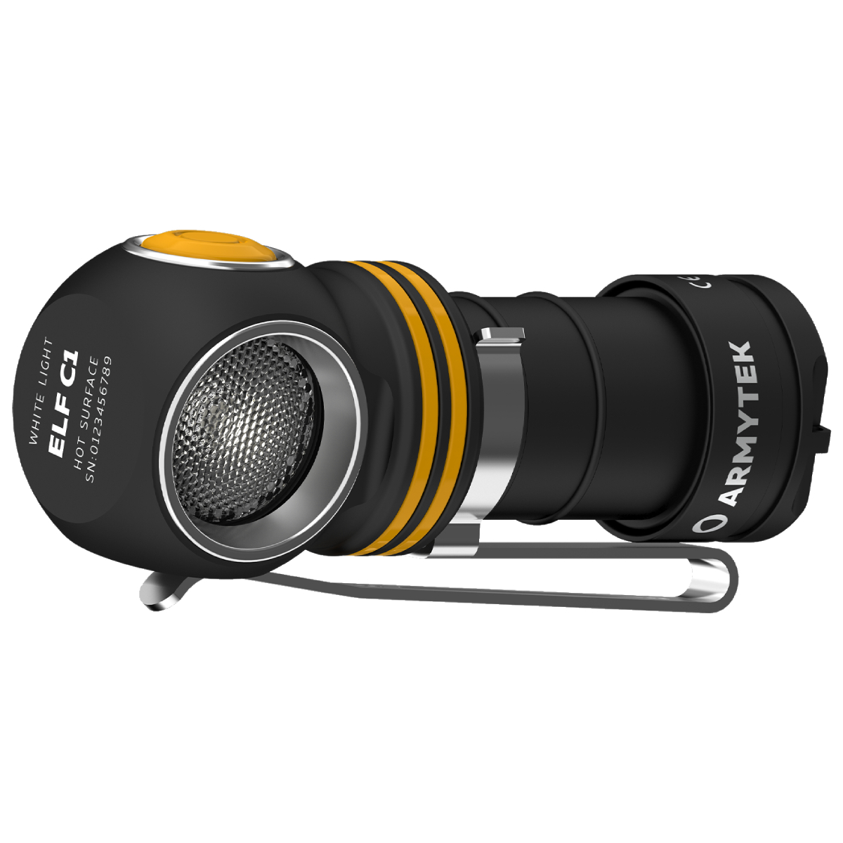 Elf C1 можно использовать с налобным креплением, фиксировать клипсой на одежде или крепить на металлические поверхности с помощью встроенного магнита. Отверстие в задней крышке позволяет носить фонарь вместе с ключами.