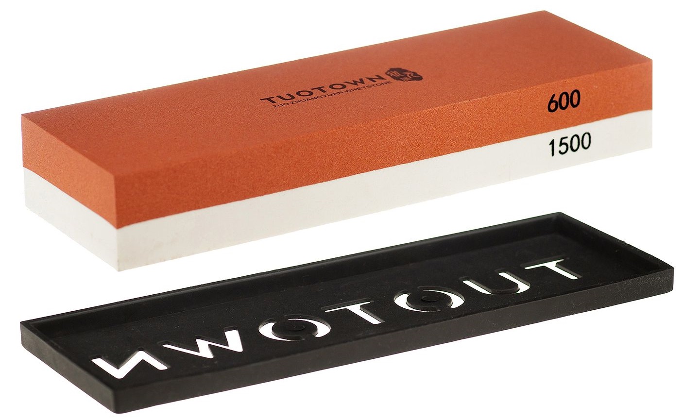 Такое сочетание позволяет использовать брусок для подготовительных работ по заточке ножей (удаления следов грубых операций, выравнивания лезвия и режущей кромки, предварительной заточки).