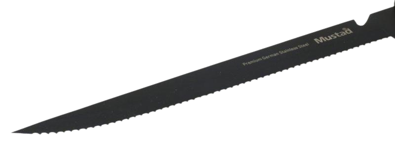 Дополнительно от коррозии защищает лезвие покрытие из тефлона. Это также улучшает и скольжение. Данный нож получил рукоять габаритами 13см. Она обладает эргономичной, продуманной геометрией и искусственным нескользящим покрытием, потому хорошо лежит в ладони.