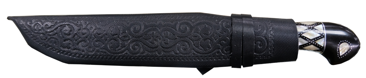 Рукоять из рога с перламутровыми вставками придает ножу не только роскошный внешний вид, но и удобство в использовании. Роговая рукоять обеспечивает надежный и комфортный хват, а перламутровые акценты добавляют элемент элегантности и утонченности. Этот материал также обладает высокой прочностью и устойчив к воздействию влаги, что увеличивает долговечность ножа.