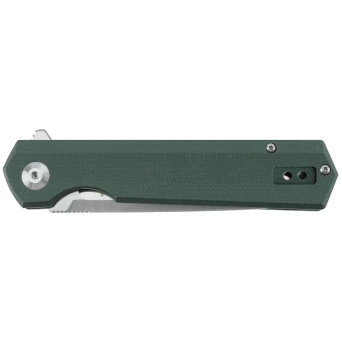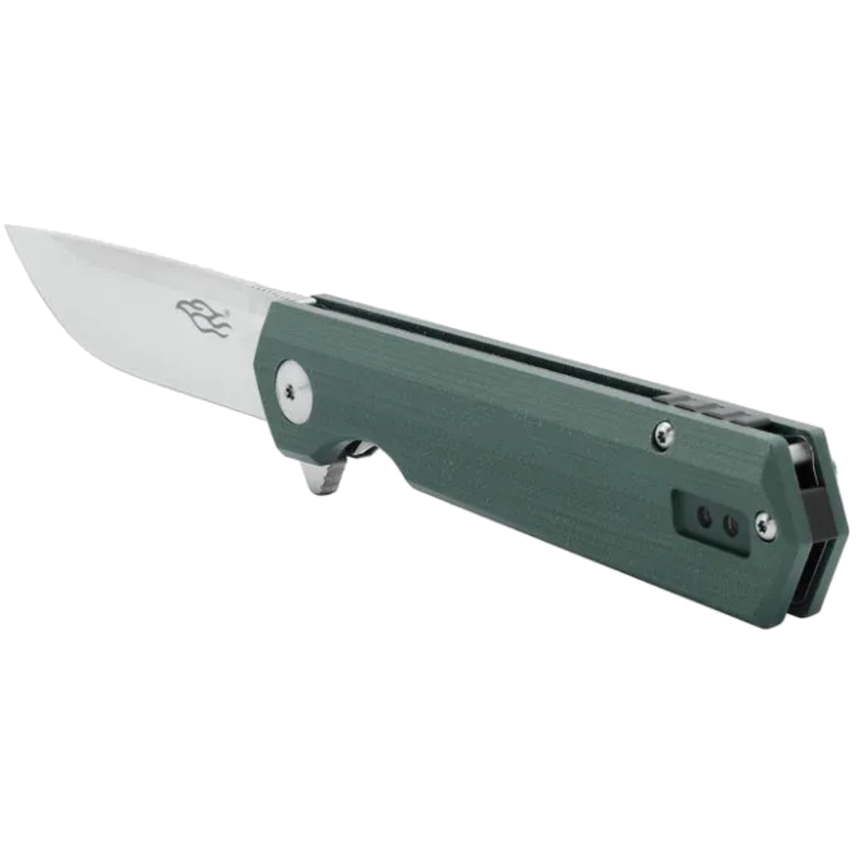 Рукоять изготовлена из прочного G10 с металлическими лайнерами. Материал не скользит, устойчив к влаге и механическим нагрузкам. Предусмотрена съёмная стальная клипса и отверстие под темляк. Модель FH11 сочетает эргономику, прочность и высокую функциональность.