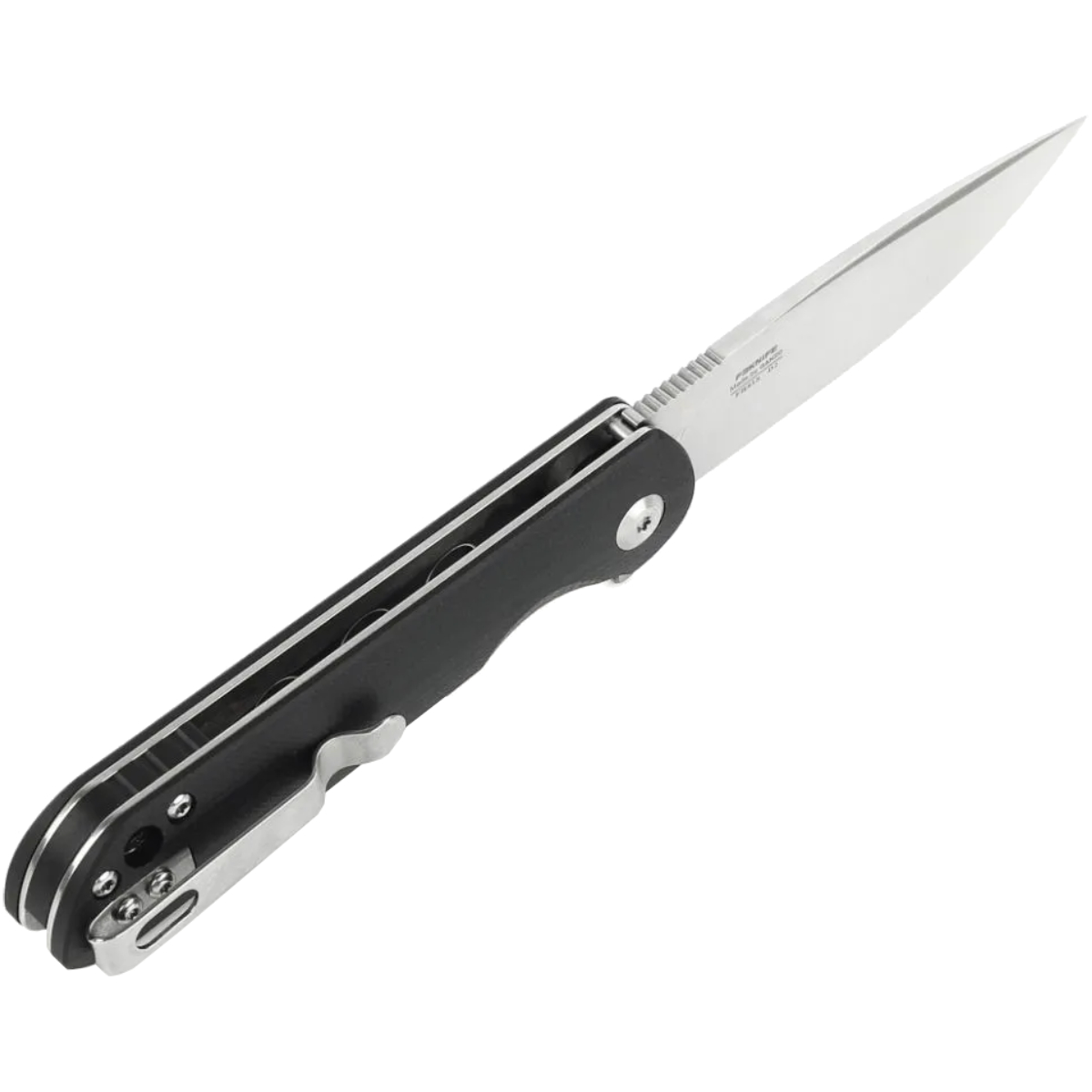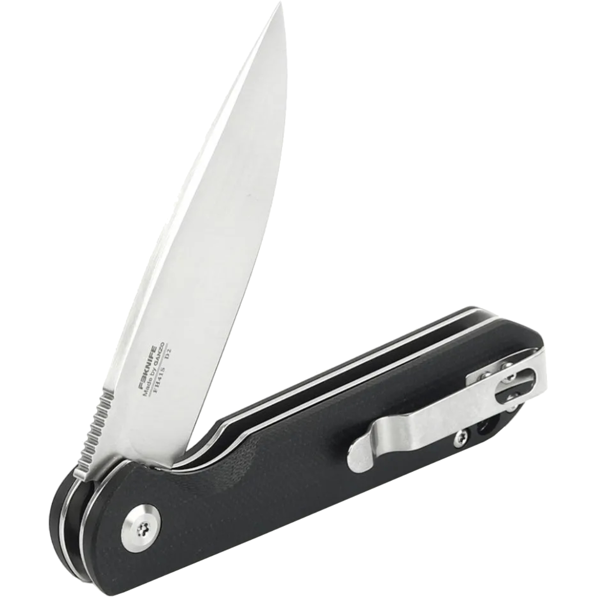 Клинок легко открывается при помощи плавника-флиппера, обеспечивая быстрый доступ к инструменту. Надёжная рукоять выполнена из стеклотекстолита G10 — прочного, износостойкого и термостойкого материала. Упор под палец на рукояти добавляет контролируемости и уверенности при использовании ножа в любых условиях.