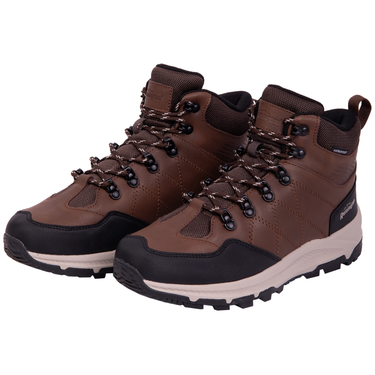 Внутренняя подкладка с водонепроницаемыми свойствами защищает от влаги, сохраняя сухость даже в дождливую погоду. Двухслойная подошва сочетает прочную резину для надежного сцепления с EVA, обеспечивающим амортизацию и легкость при ходьбе.