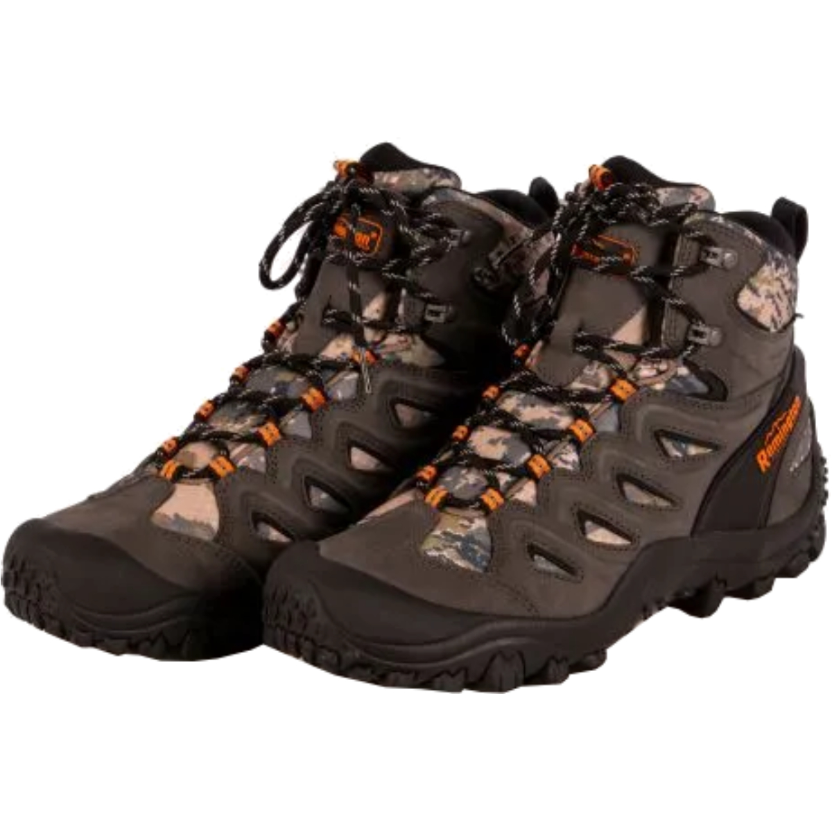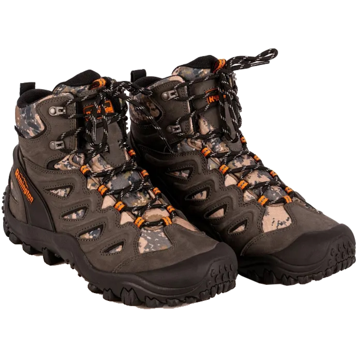 Камуфляж Figure гармонирует с экипировкой Remington. Вставки из TPU усиливают корпус ботинка, повышая устойчивость к износу. Подошва из ЭВА амортизирует шаг, снижая нагрузку на стопу при длительной ходьбе.