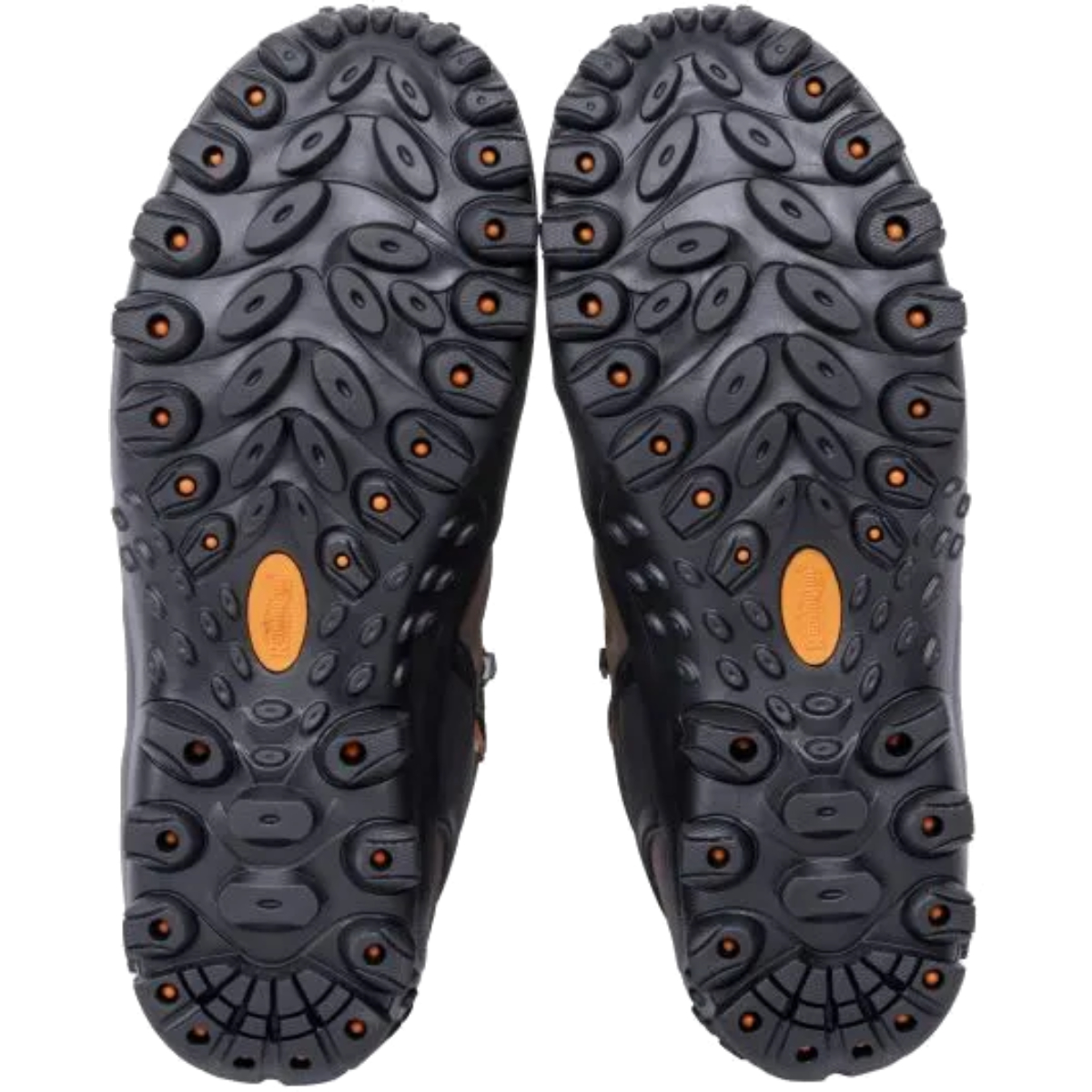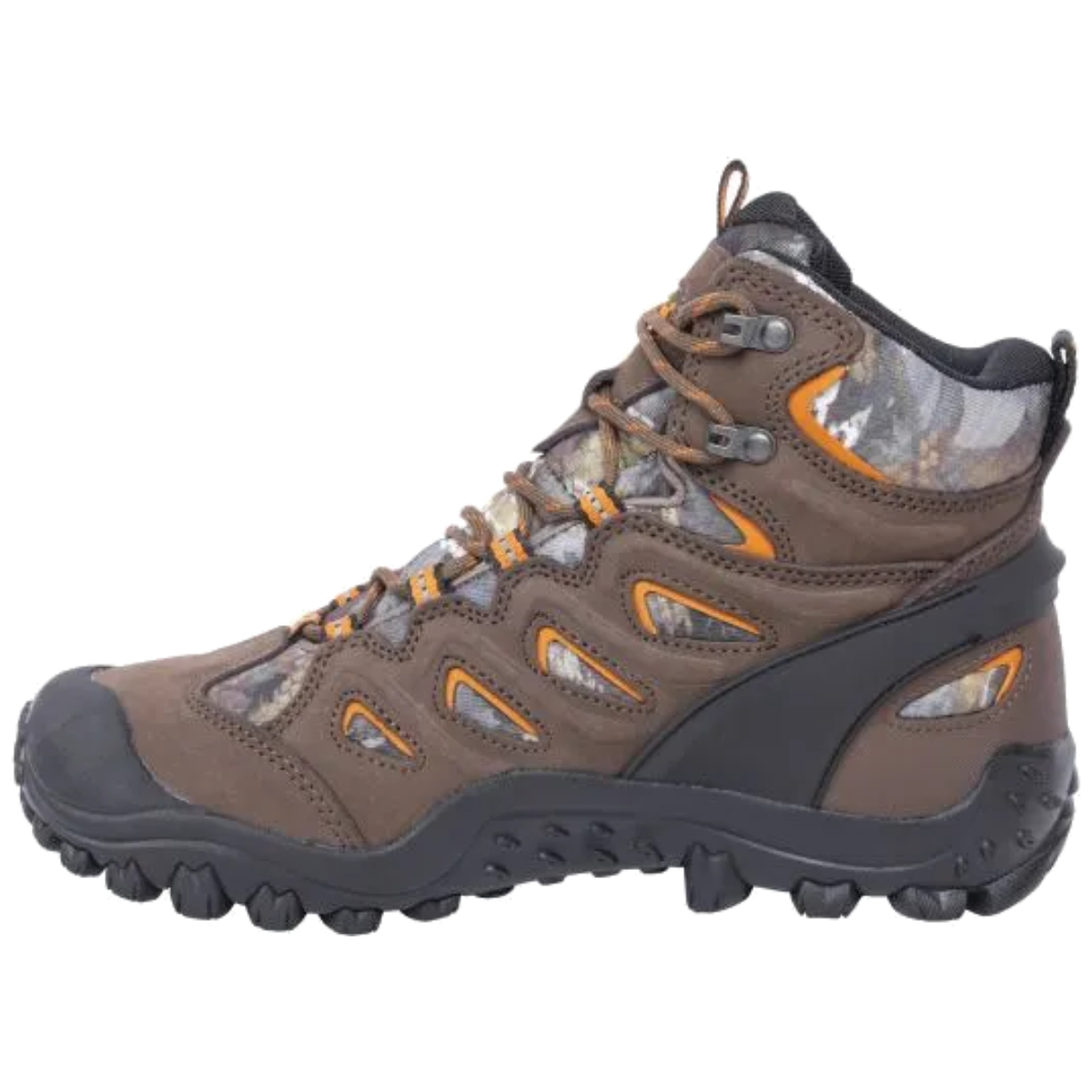 Промежуточная подошва из ЭВА амортизирует удары, снижая нагрузку при движении. Резиновая подметка с рельефным рисунком гарантирует устойчивое сцепление на пересечённой местности и бездорожье. Усиленная пятка и прочная шнуровка обеспечивают надежную фиксацию стопы.
