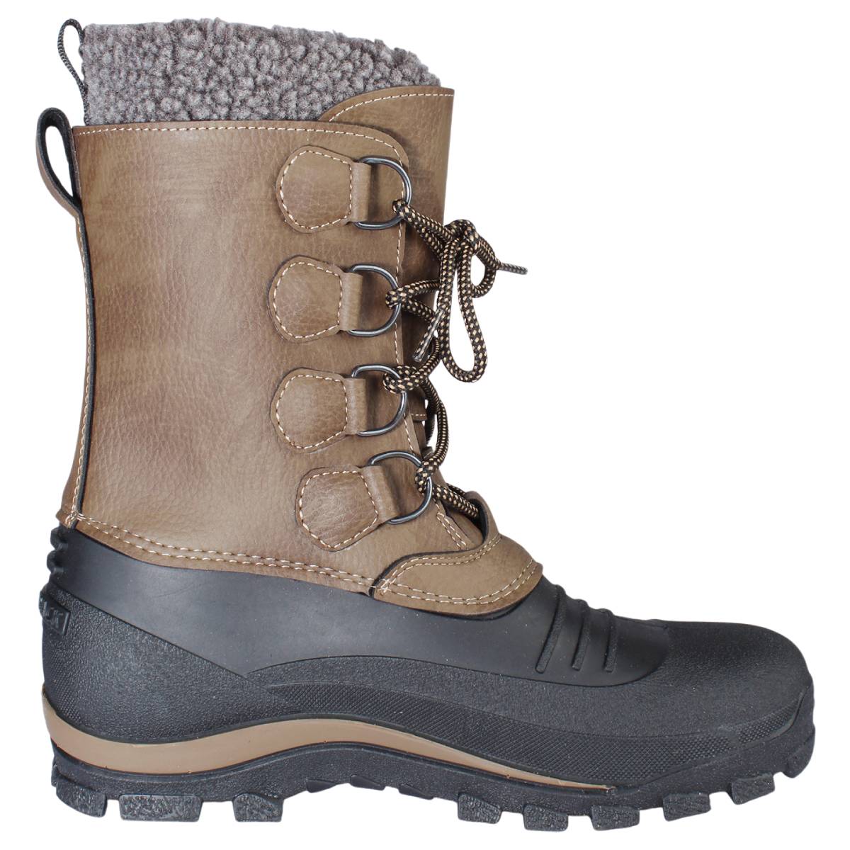 Клапаны на языке предотвращают попадание влаги и мусора, а петли на заднике упрощают надевание. Ботинки фиксируются шнуровкой с крупными кольцами, а прочный верх пришит к галоше двойным швом для долговечности.