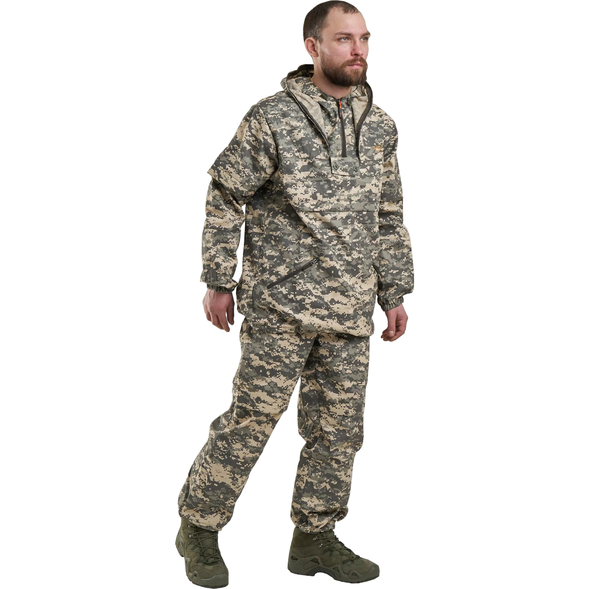 Для полной защиты куртка снабжена внутренней юбкой, заправляемой в брюки, а плотные манжеты предотвращают проникновение насекомых. Вместительный центральный карман куртки-анорака удобен для хранения необходимых мелочей.