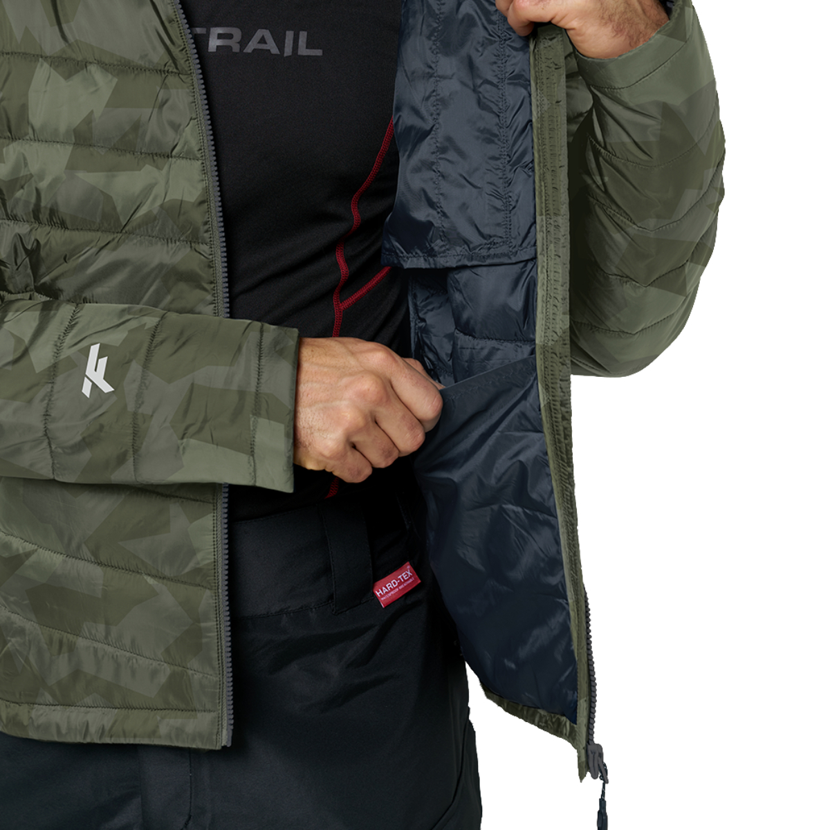 Куртка оснащена утеплителем DuPont Sorona, который эффективно защищает от холода. Материал равномерно распределен по ячейкам, что предотвращает его комкание после стирки. Внешний слой имеет водоотталкивающее покрытие, защищающее от ветра и легкого дождя. Анатомически выверенный крой обеспечивает свободу движений, а оригинальная камуфляжная расцветка придает стильный вид.