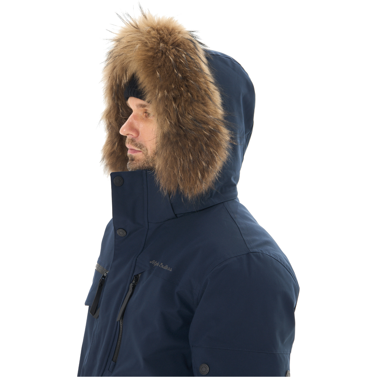Парка Maestat имеет прямой крой, практичные карманы и украшена натуральным мехом на капюшоне, добавляющим роскошь и элегантность. Доступна в синем, черном и зеленом цветах, а также в размере от 46 до 56, что делает её идеальным выбором для повседневной носки.