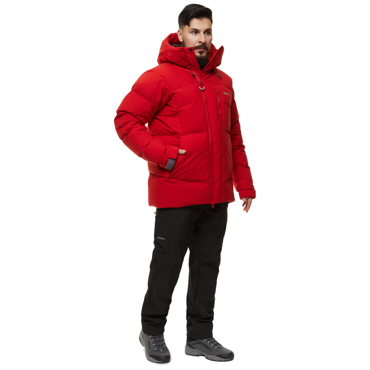 Куртка имеет мембранный верх и утеплитель из гусиного пуха. Рукава с ластовицей и двухзамковая молния с влагозащитной планкой обеспечивают комфорт и защиту. Объемный капюшон с жестким козырьком регулируется и подходит для ношения поверх каски.
