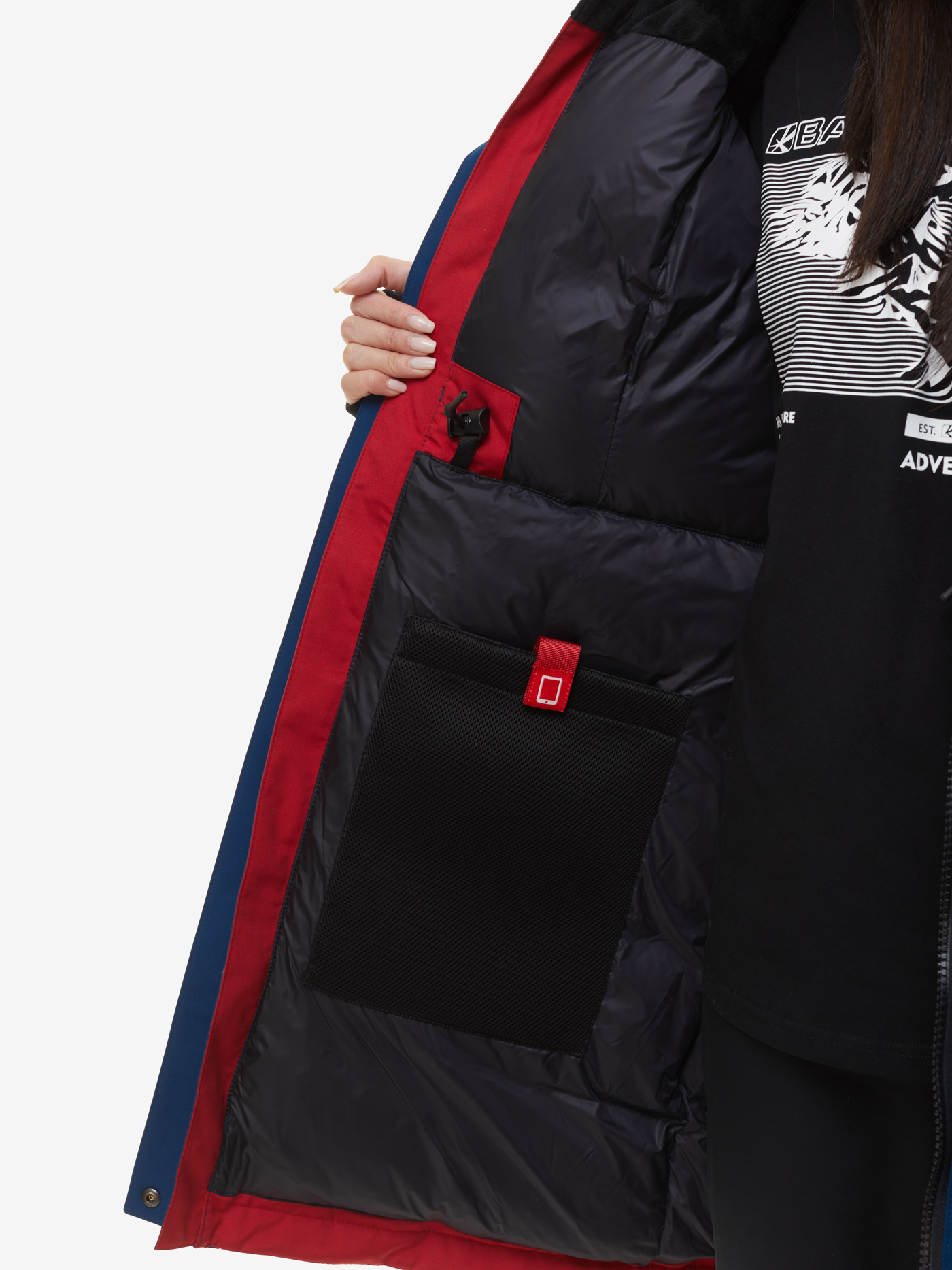• просторный глубокий капюшон с высокой стойкой, тубусом и регулировками;