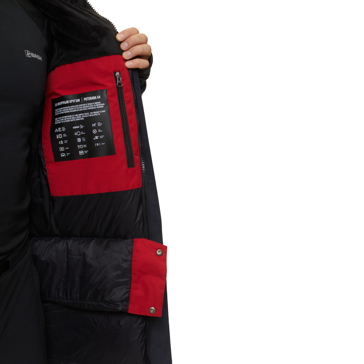 Парка оснащена максимально теплым пуховым пакетом и утепленным регулируемым капюшоном, к которому можно пристегнуть опушку BASK (продается отдельно). Центральная молния с двумя замками и системой Zip Garages обеспечивает надежную защиту от холода, а регулируемые манжеты рукавов с внутренними манжетами-полуперчатками «под палец» повышают комфорт.