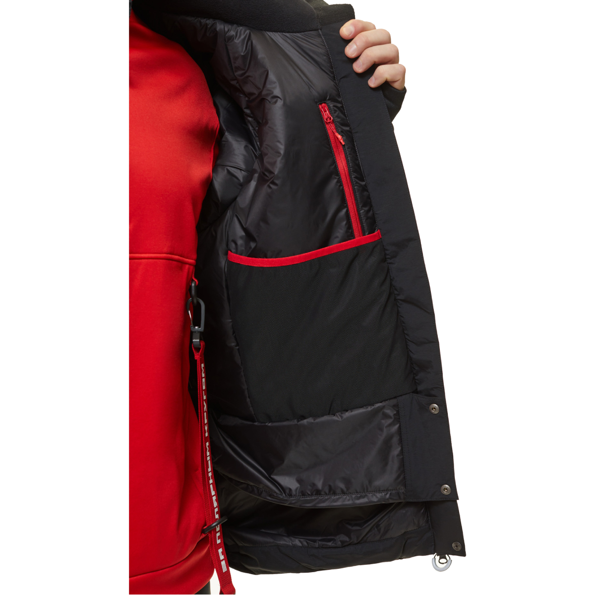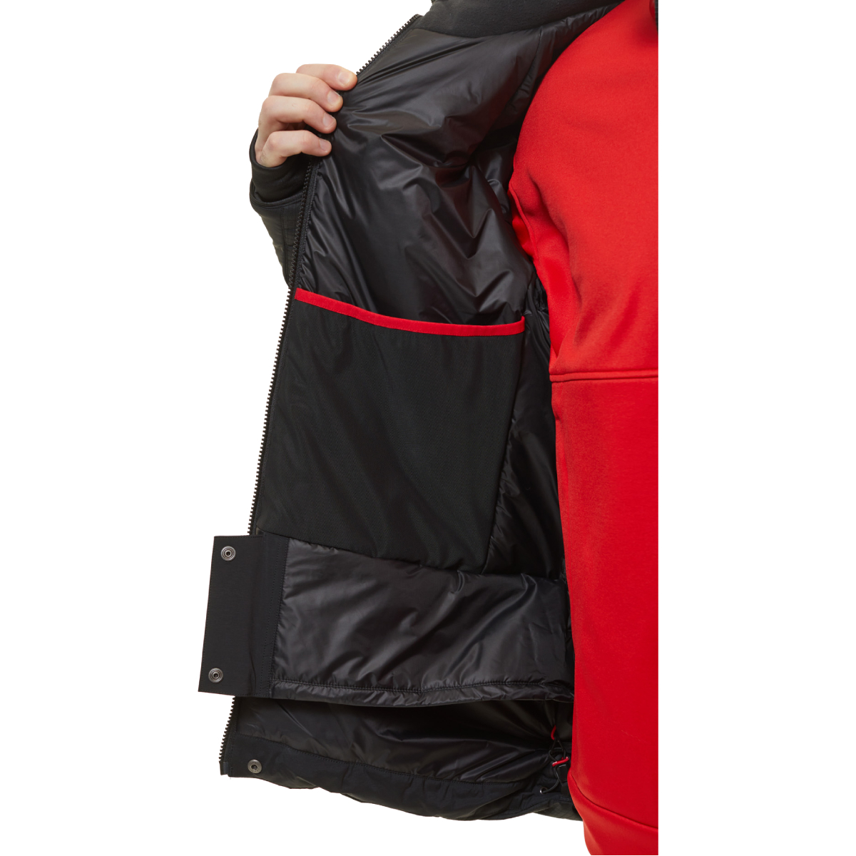 Куртка оснащена объёмным тёплым капюшоном, который можно использовать с каской, и высоким утеплённым воротником для защиты от холода. Центральная молния с системой Zip Garages предотвращает попадание влаги и снега, а эластичные манжеты-полуперчатки и регулируемый низ рукавов с липучкой Velcro® обеспечивают дополнительную теплоизоляцию.