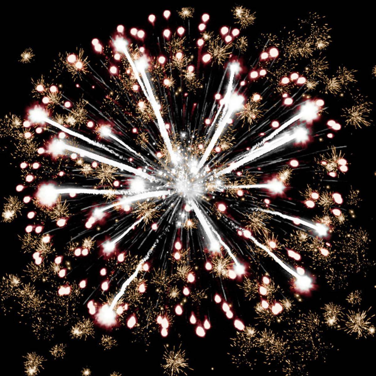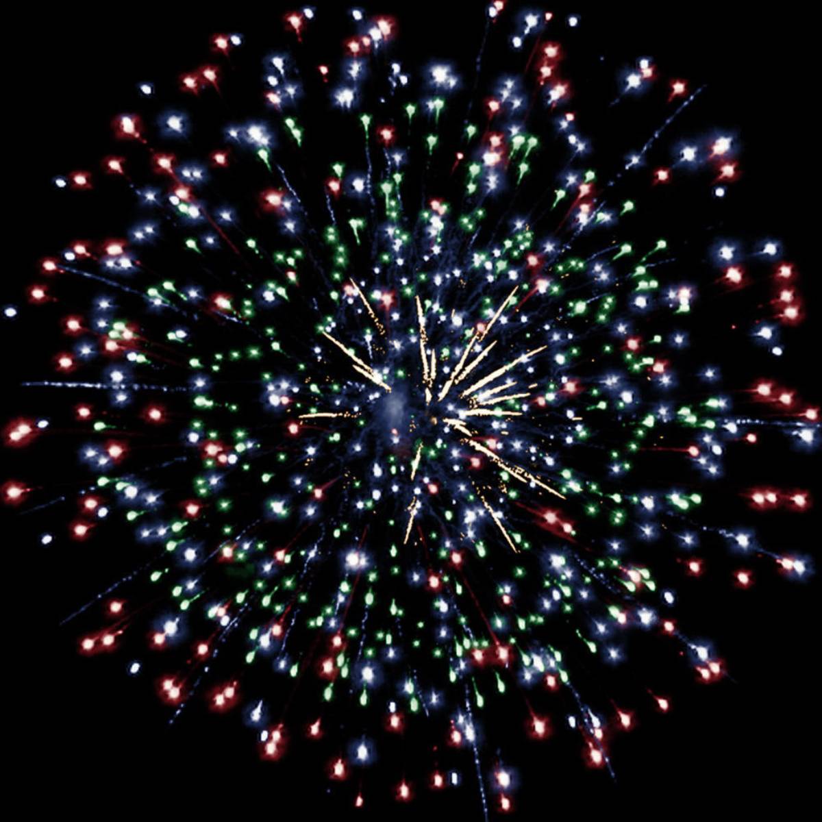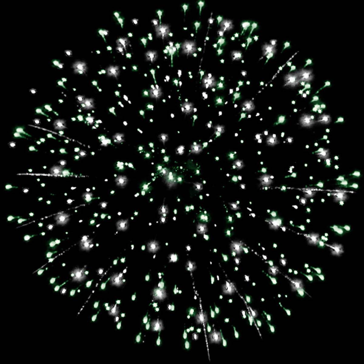 Первоначальные залпы разрываются яркими сферами с красными, зелеными, белыми огнями, а затем чередуются золотые и серебряные форсы, создавая великолепные световые картины. Особенное внимание привлекают трещащие сферы, которые добавляют динамики и яркости.