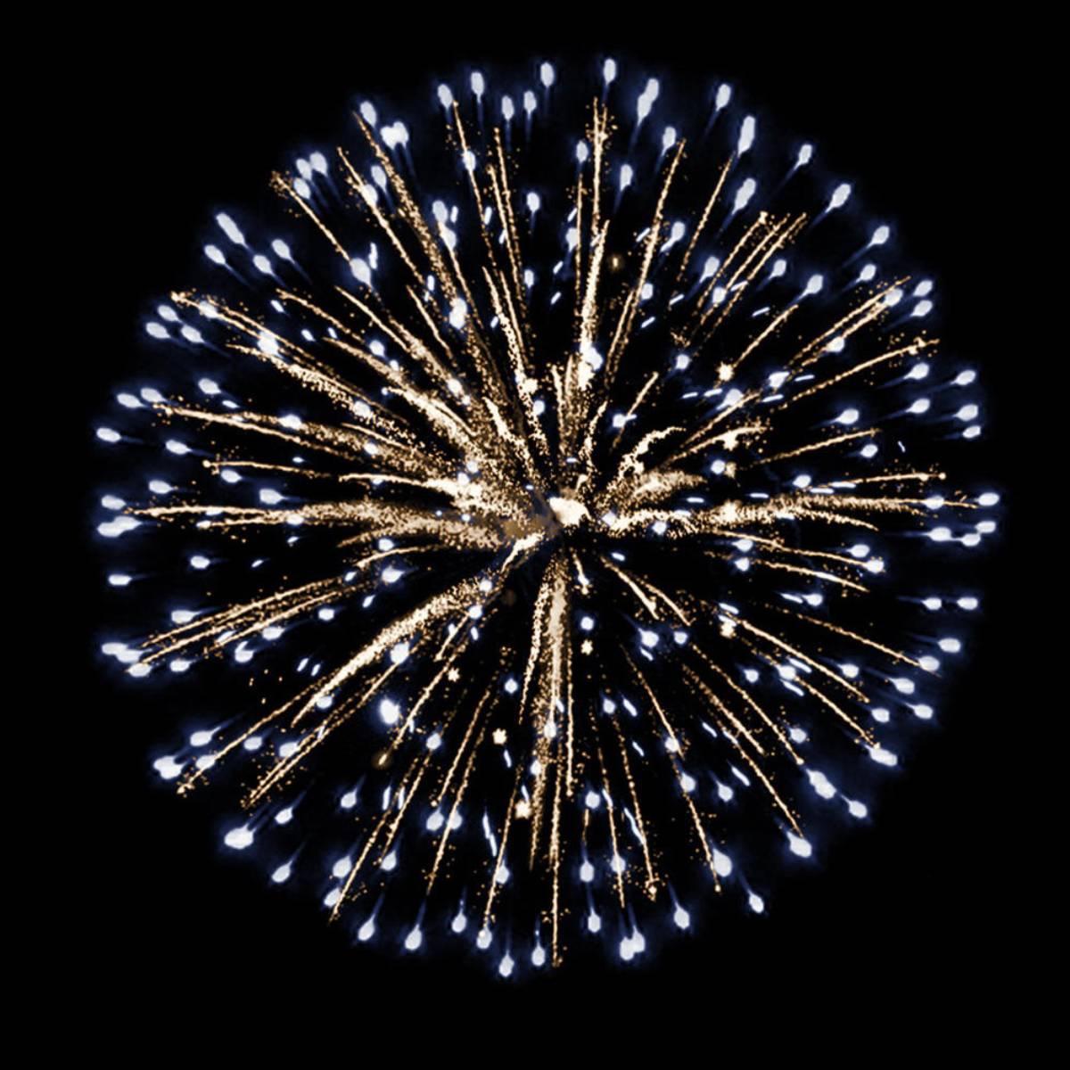 Завершается шоу короткими золотыми форсами, синими огнями и множеством трещащих сфер, наполняя небо искрящимся сиянием. Этот фейерверк будет идеальным акцентом для любого новогоднего торжества.