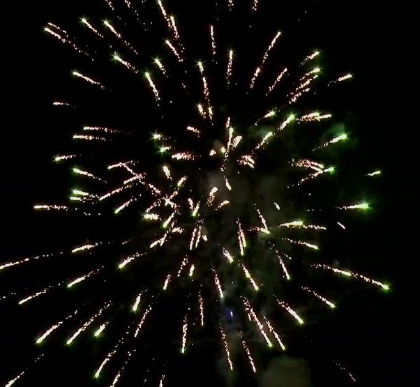 1. Фонтан: Красные огни и треск. Выстреливает салюты.