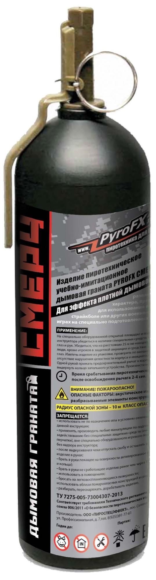 Разработана на основе не токсичных кинопроизводственных дымов и предназначена для создания дымовых завес. Выделяет густой белый дым.