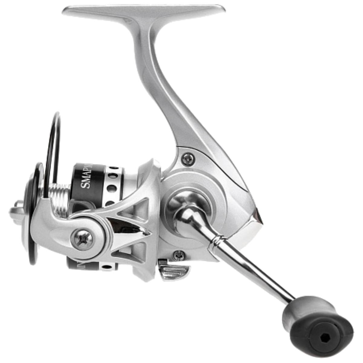 Рукоять вкручивается напрямую в главную шестерню, что уменьшает люфт и продлевает срок службы механизма. Удобный кноб обеспечивает комфортный хват, а ручка при необходимости переставляется на другую сторону. Основная шпуля выполнена из алюминия, запасная не предусмотрена.