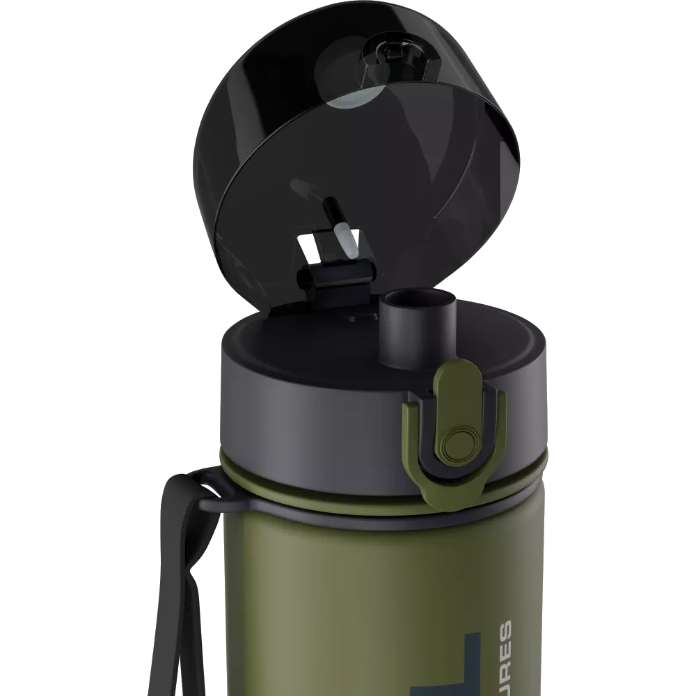 Удобная крышка с кнопкой, замок-фиксатор, а также силиконовый элемент надёжно закрывают бутылку и предотвращают проливание напитка, что позволяет безопасно переносить её в сумке или рюкзаке. Оптимальный объём 0,75 мл позволяет взять с собой достаточное количество жидкости на прогулку или тренировку.