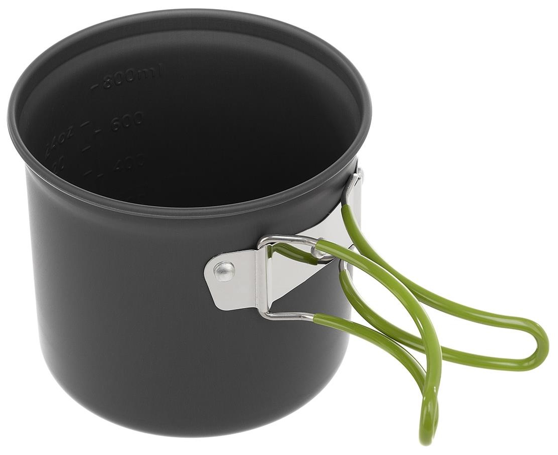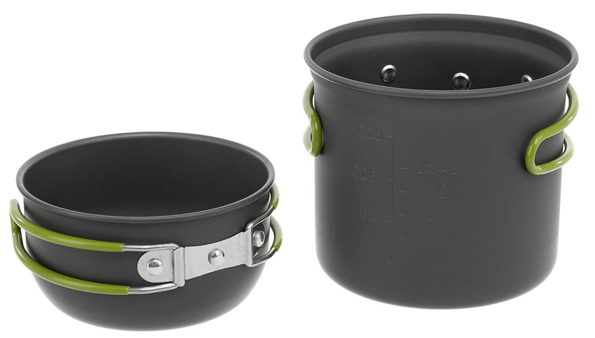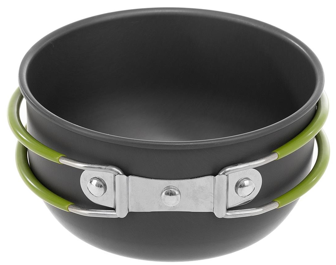 Набор рассчитан на 1-2 человека. Имеет откидные ручки с термоизолирующим покрытием, которые экономят объем при транспортировке, делая использование посуды более комфортным. Набор поставляется с нейлоновым мешочком для транспортировки и хранения.